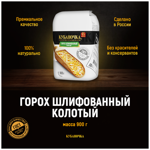 Горох шлифованный колотый Кубаночка, термоупаковка 900г