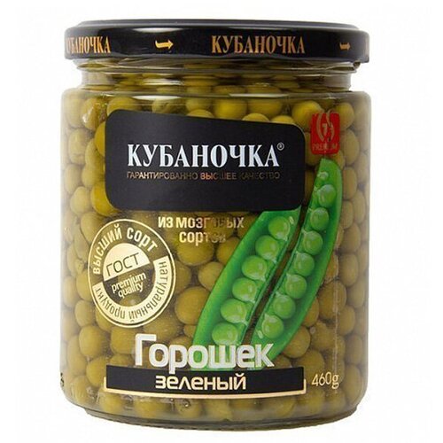 Горошек зеленый консервированный из мозговых сортов "Кубаночка" ст/б 460 гр