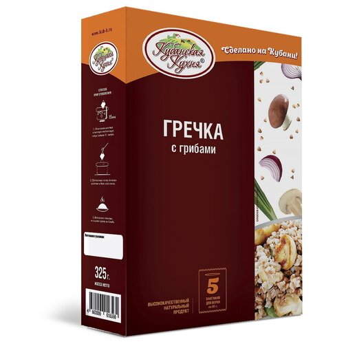 Гречка с грибами Кубанская Кухня, в упаковке 5 пакетиков для варки по 65 г, набор 6 шт
