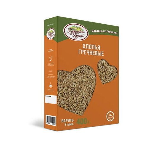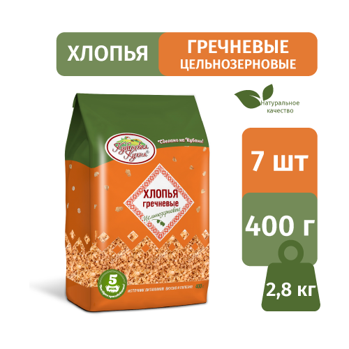 Хлопья гречневые цельнозерновые Кубанская кухня 400 г/16 шт