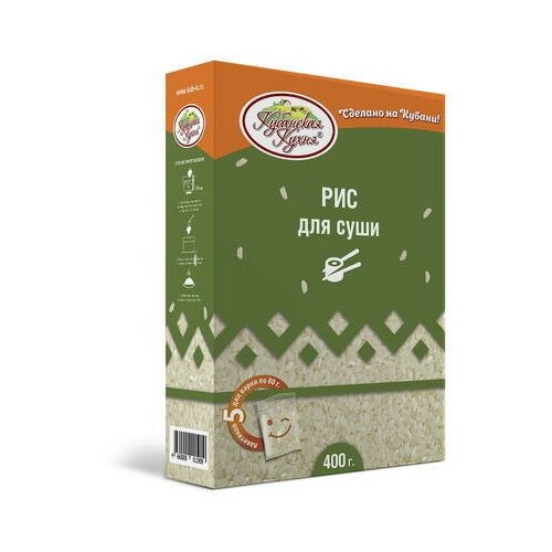 Рис для суши Кубанская Кухня 400 г, пять пакетиков для варки по 80 г, набор 14 шт