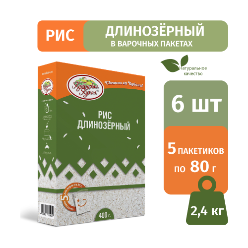 Рис краснодарский круглозерный Кубанская Кухня 400 г, пять пакетиков для варки по 80 г, набор 6 шт
