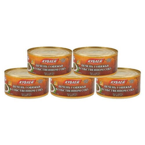 Печень говяжья в собственном соку, "Кублей", 5 шт. по 325 гр.
