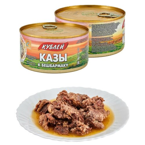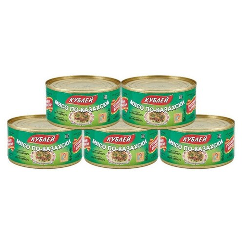 Ассорти консерв: Гуляш говяжий, Казы к бешбармаку, Каша перловая с говядиной, Конина тушеная, Килька балтийская; "Кублей", 1540 гр.