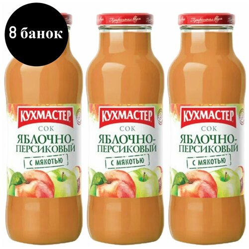 Кухмастер Сок натуральный яблочно-персиковый с мякотью 8 банок по 680 мл. Без ГМО. Без консервантов.