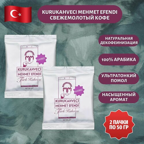 Кофе молотый Kurukahveci Mehmet Efendi DECAF(без кофеина) Арабика 100% в мягкой упаковке 50 гр. 2шт.