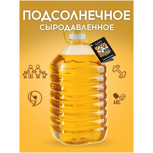 Лару. Масло подсолнечное сыродавленное 5 л. Первый холодный отжим, нерафинированное, растительное.