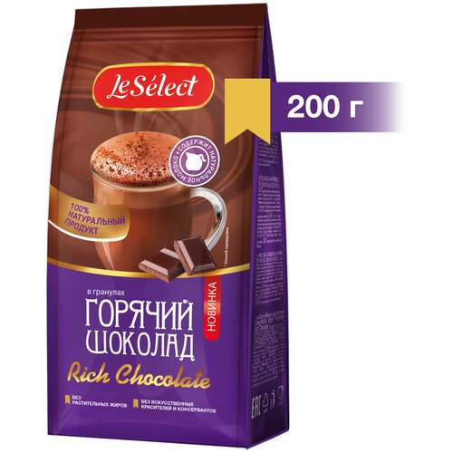 Горячий шоколад Rich Chocolate, Le Select, на натуральном молоке, гранулированный, 200 г.