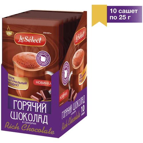Горячий шоколад Rich Chocolate, Le Select, гранулированный, шоубокс 10 сашет по 25 г