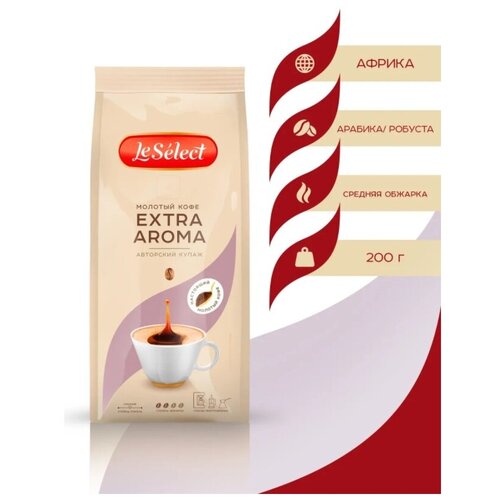 Кофе молотый Экстра Арома, Le Select, Арабика / Робуста, высокое содержание кофеина, 200 гр