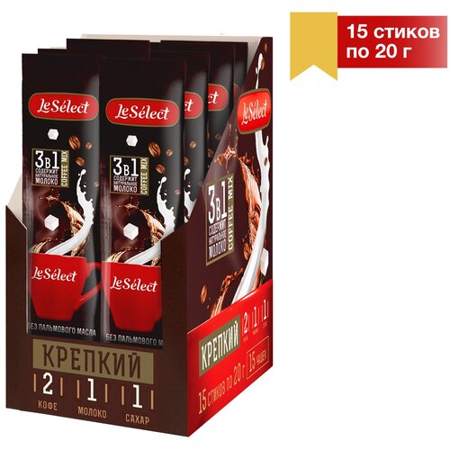 Кофе растворимый 3 в 1 в пакетиках, "Крепкий", Le Select, шоубокс 15 шт. по 20 г
