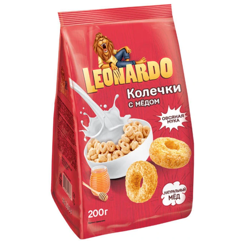 Завтрак готовый Leonardo овсяние колечки с медом, 200гр