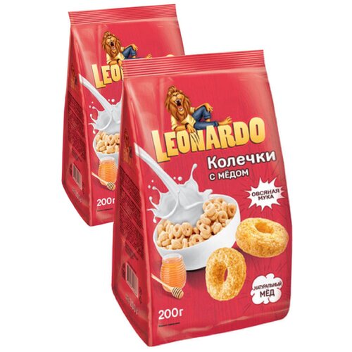 «Leonardo», готовый завтрак «Колечки с мёдом», 2 упаковки по 200 г