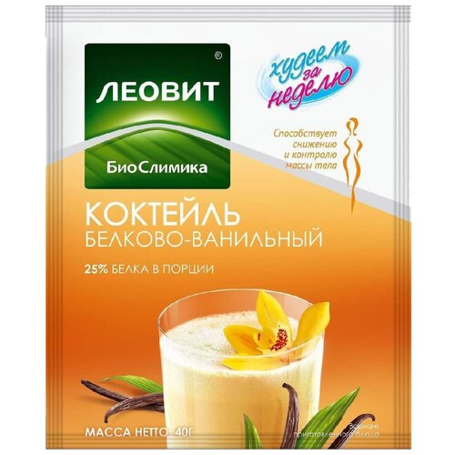 Леовит Худеем за неделю Коктейль белково-ванильный. 5 пакетов по 40 г. Упаковка 200 г.