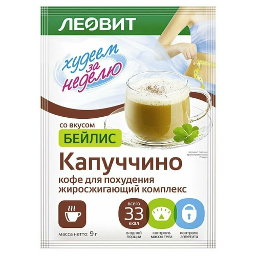 Капуччино леовит Худеем за неделю (жиросжигающий комплекс) бейлис. Шоубокс 15 шт. по 14 г.