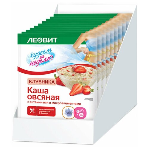 Каша овсяная "Клубника" с витаминами и микроэлементами леовит Худеем за неделю . Шоубокс 10 шт. по 40 г.