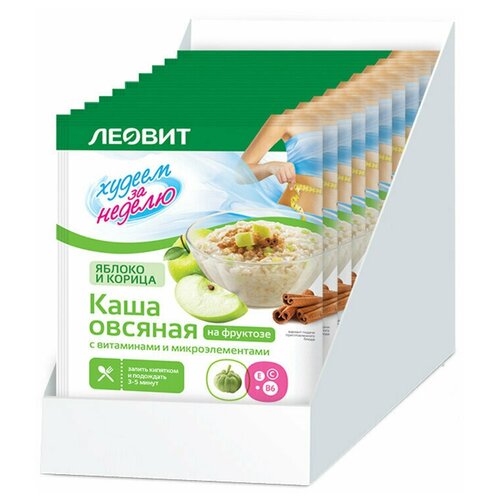 Каша овсяная "Яблоко и корица" с витаминами и микроэлементами леовит Худеем за неделю. Шоубокс 10 шт. по 40 г.