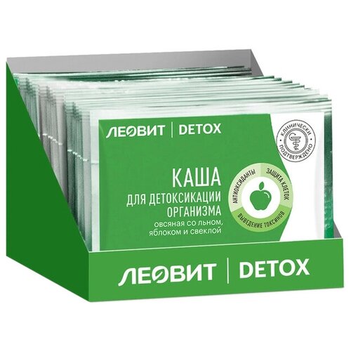 Каша для детоксикации организма овсяная со льном, яблоком и свеклой леовит Detox. Шоубокс 12 шт. по 27 г.