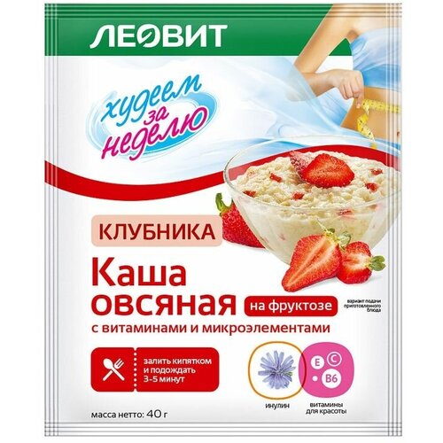 Каша овсяная «леовит» Худеем за неделю клубника витамины и микроэлементы, 40 г
