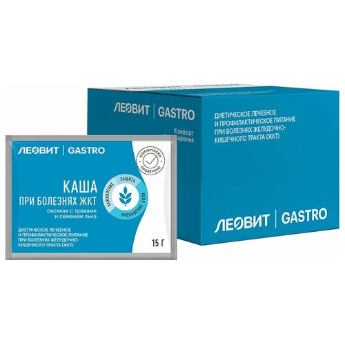 Каша при болезнях ЖКТ овсяная с травами и семенем льна леовит Gastro. Шоубокс 20 шт. по 15 г.