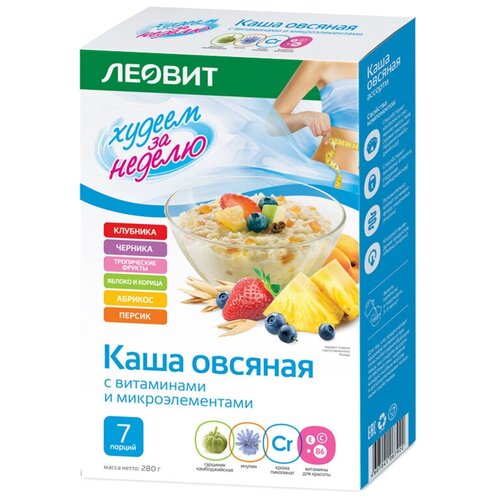 Каша овсяная Ассорти / 7 пакетов по 40 г / Разные вкусы / леовит / Коробка 280 г.