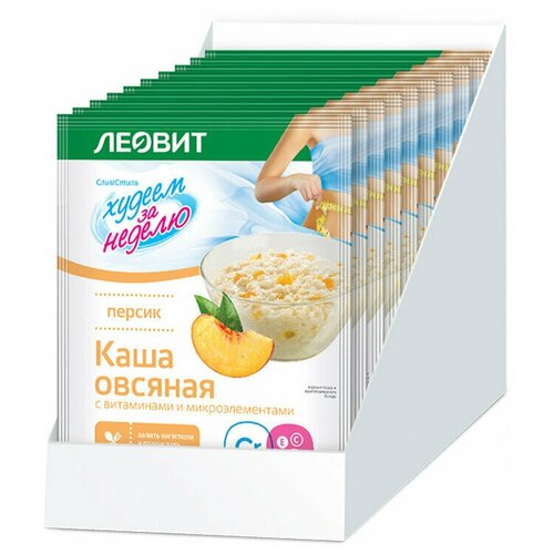 Каша овсяная LEOVIT леовит "Персик" с витаминами и микроэлементами (упаковка 10 штук)