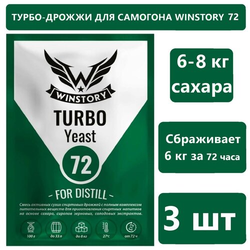 Турбо дрожжи спиртовые WINSTORY TURBO 72, 100 гр /для самогона/turbo дрожжи/ (комплект из 3 шт)