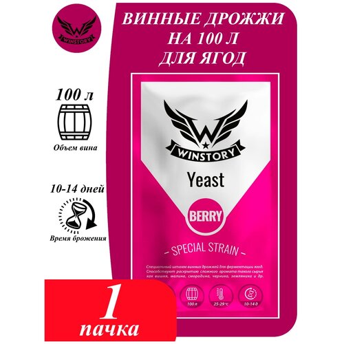 Дрожжи для ягодных вин Winstory Berry, на 100 литров, 50 гр/ винные дрожжи (1 штука)