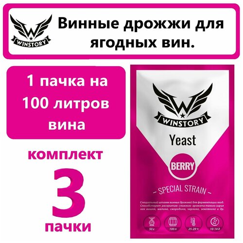Дрожжи для ягодных вин Winstory Berry, на 100 литров, 50 гр/ винные дрожжи (3 штуки)