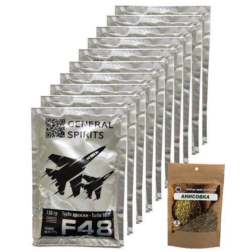 Спиртовые турбо дрожжи "General Spirits F48" для браги, водки, самогона (10 штук) + "Анисовка" набор специй (на 3л)