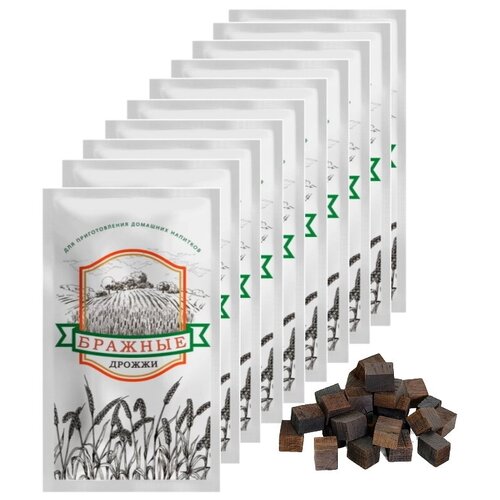 Спиртовые дрожжи "Бражные" для браги, водки, самогона (10 штук) + Обжаренные Дубовые Кубики (50 гр.)