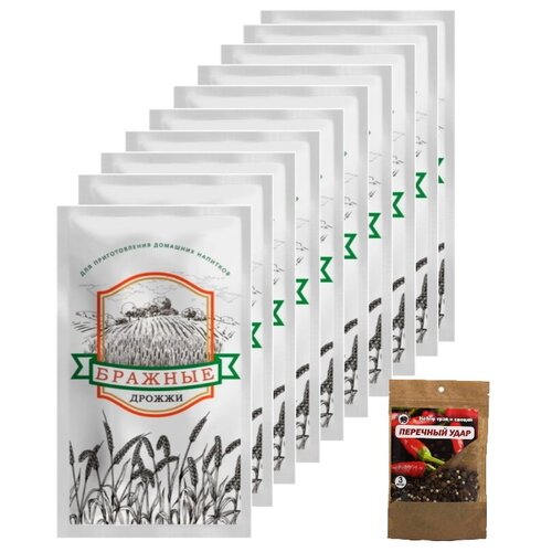 Спиртовые дрожжи "Бражные" для браги, водки, самогона (10 штук) + "Перечный удар" набор специй (на 3л)
