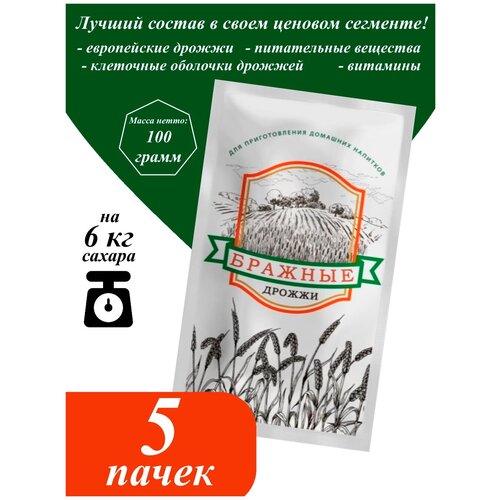 Спиртовые дрожжи для самогона, водки, браги "Бражные" 100 гр. (5 пачек)
