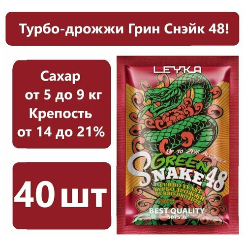 Спиртовые турбо дрожжи GREEN SNAKE 140 гр /дрожжи для самогона, для браги, для виски/ (комплект из 40 шт)