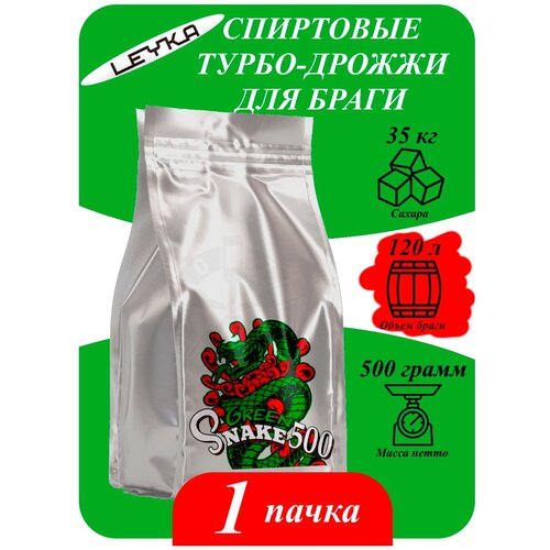 Спиртовые турбо дрожжи Green Snake 500 на 120 литров (1 пачка)/ дрожжи для самогона, браги/ дрожжи turbo 100l/ 500 гр