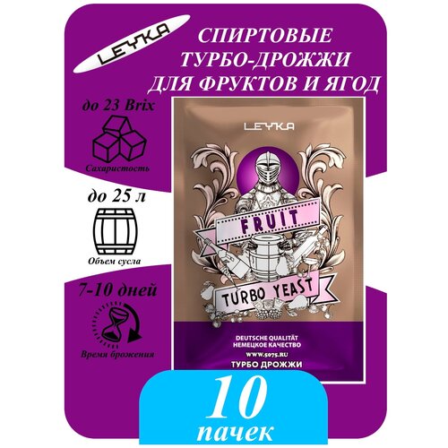 Спиртовые турбо дрожжи Leyka Fruit для фруктовых браг (10 пачек)/ дрожжи для кальвадоса, сливовицы, шнапса, коньяка, чачи/ дрожжи Лейка Фрут/ 68 гр