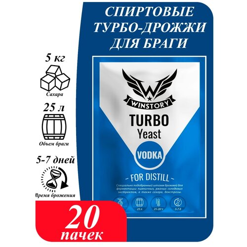 Спиртовые турбо дрожжи WINSTORY TURBO VODKA (20 пачек) / дрожжи для самогона, браги, водки/ дрожжи Винстори Водка/ 85 гр