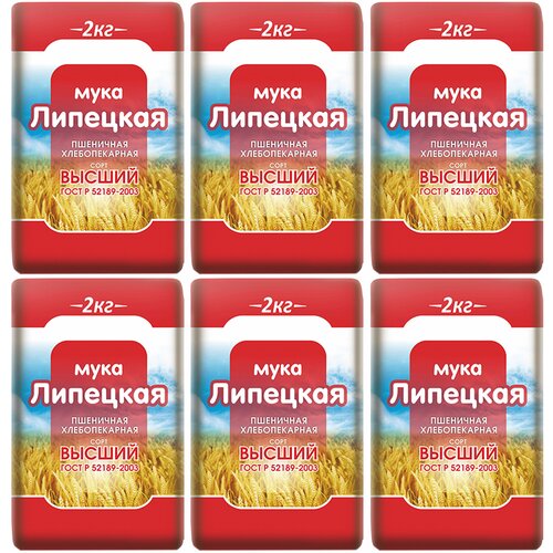 Мука Липецкая пшеничная Высший сорт ГОСТ 2 кг набор 6 шт. Лимак