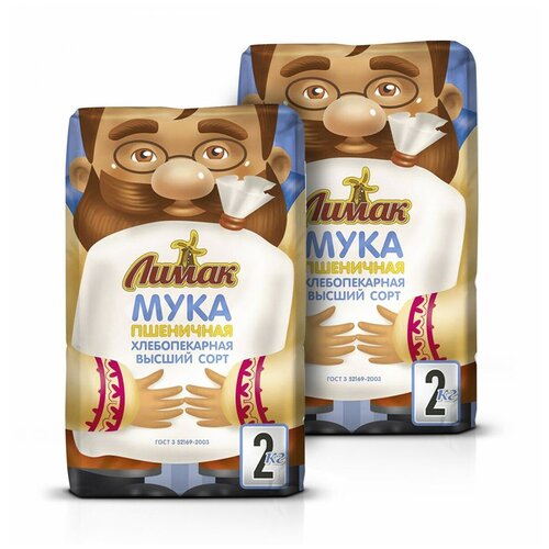 Мука Лимак пшеничная хлебопекарная высший сорт, 2шт по 2кг