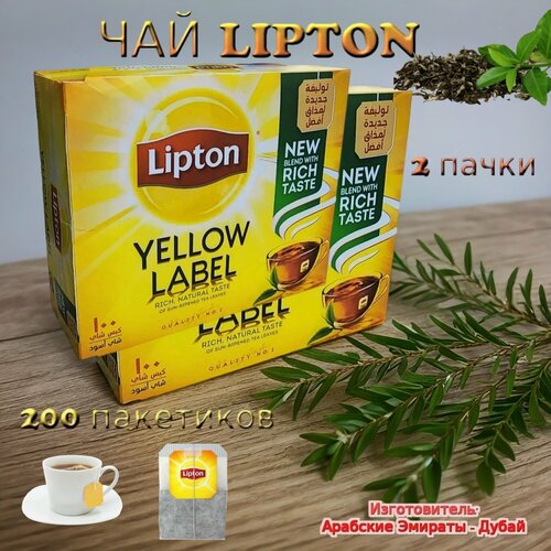 Чай Lipton Yellow Label, черный, 2 пачки по 100 пакетиков, 400г, Арабские Эмираты