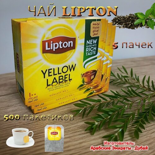 Чай Lipton Yellow Label, черный, 100 пакетиков, 1000г, 5 пачек, Арабские Эмираты