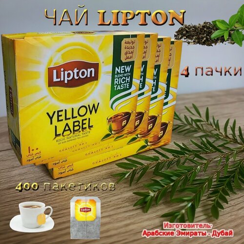 Чай Lipton Yellow Label, черный, 100 пакетиков, 800г, 4 пачки, Арабские Эмираты
