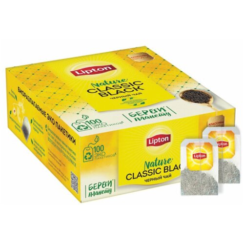 Чай LIPTON "Black Classic", черный, 100 пакетиков с ярлычками по 1,8 г