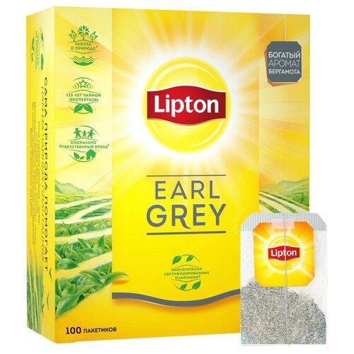 Чай LIPTON (Липтон) "Earl Grey", черный, 100 пакетиков с ярлычками по 2 г, 67106269