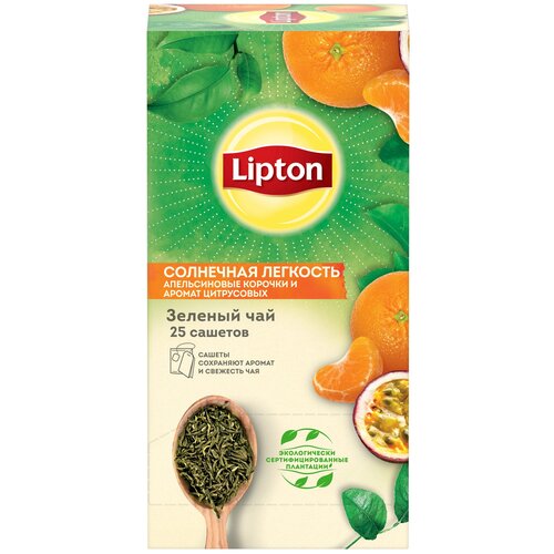 Чай Lipton Солнечная легкость с цитрусом и апельсиновой корочкой зеленый 25 пакетиков, 1221216