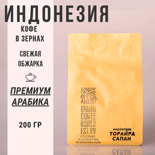 Кофе в зернах Индонезия Торайра Сапан Светлая обжарка 200 г. Specialty зерно. 100% арабика. Свежеобжаренный кофе.