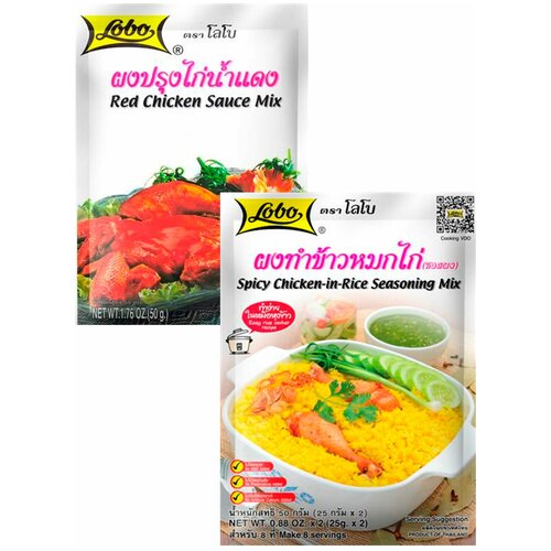 Набор приправ (2х видов) для приготовления тайских блюд, Lobo, Смесь для жарки креветки с перцем и солью, Смесь соуса чили для морепродуктов
