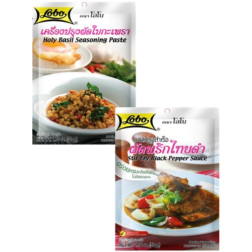 Приправа для 2х блюд азиатской кухни, LOBO, Смесь приправ с базиликом и соус с черным перцем,специи для вторых блюд, блюда Азии и Таиланда, приправы