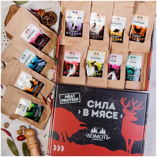 Подарочный набор Вяленое мясо "сила В мясе" ТМ Ломоть 12 видов мяса по 40 грамм