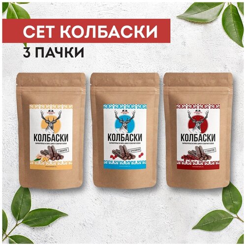 Мясо дикого северного оленя тм Ломоть "Сет диких колбасок" (3 пачки ПО 60 ГР.)